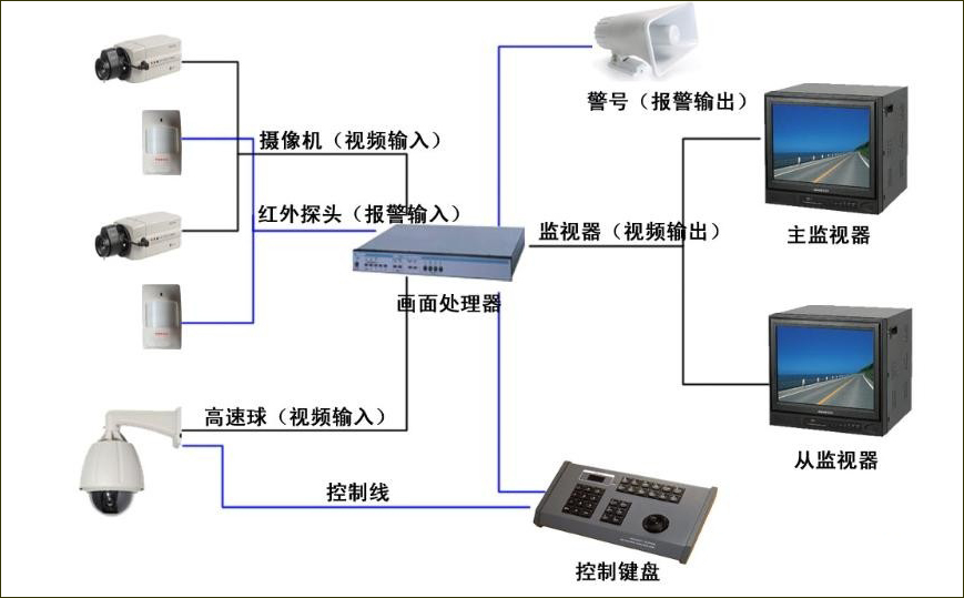 監(jiān)控安裝公司深圳科佳達(dá)為您介紹監(jiān)控系統(tǒng)是由攝像、傳輸、控制、顯示、記錄登記5大部分組成。